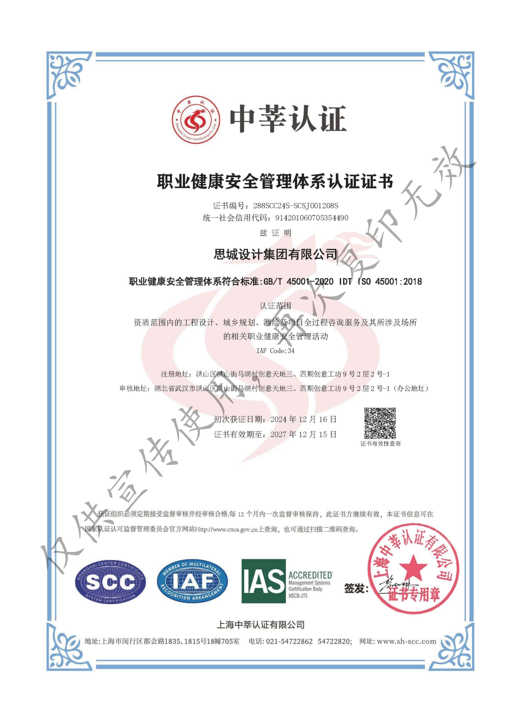 • 職業健康安全管理體系認證證書